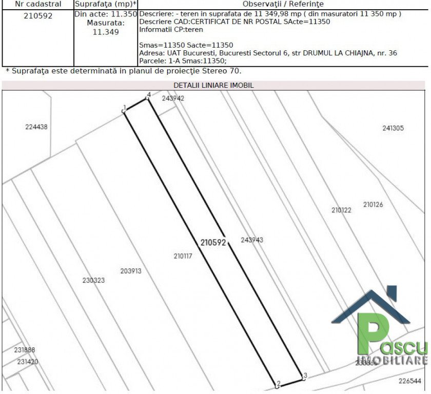 Exclusivitate PASCU Imobiliare! Comision zero! Terenul se afla pe Drum la Chiajna, o zona in plina dezvoltare, drum proaspat asfaltat ce reprezinta noua cale de acces din Bucuresti spre Chiajna, prin cartierul Giulesti, cu trafic auto intens. Terenul are o suprafata de 11.350 mp si o deschidere de 33 metri liniari. Imobilul este reglementat de PUZ Coordonator Sector 6, se afla in zona L1a, POT 45%, CUT 1,52, regim maximum de inaltime S+P+2+M. Toate utilitatile se afla la aproximativ 200 metri liniari. Ideal constructii hale, functiuni comercial sau locuinte. Acte la zi, fara litigii! Pentru mai multe detalii si stabilirea unei vizionari, accesati pascuimobiliare.ro!