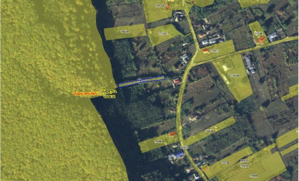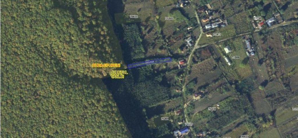 Se vinde prin licitatie publica Jud. Vaslui. UAT Duda-Epureni, T1 P 54/1, 56/1 pct "Calarasi" Teren extravilan arabil Suprafata 600 mp Imobil inregistrat in planul cadastral fara localizare certa datorita lipsei planului parcelar. Avand categoria de folosinta padure in suprafata de 200 mp. Imobil inregistrat in planul cadastral fara localizare certa datorita lipsei planului parcelar. Avand categoria de folosinta vie in suprafata de 400 mp. Accesul catre proprietate se face pe drum de pamant. Deschidere de 7,41 ml