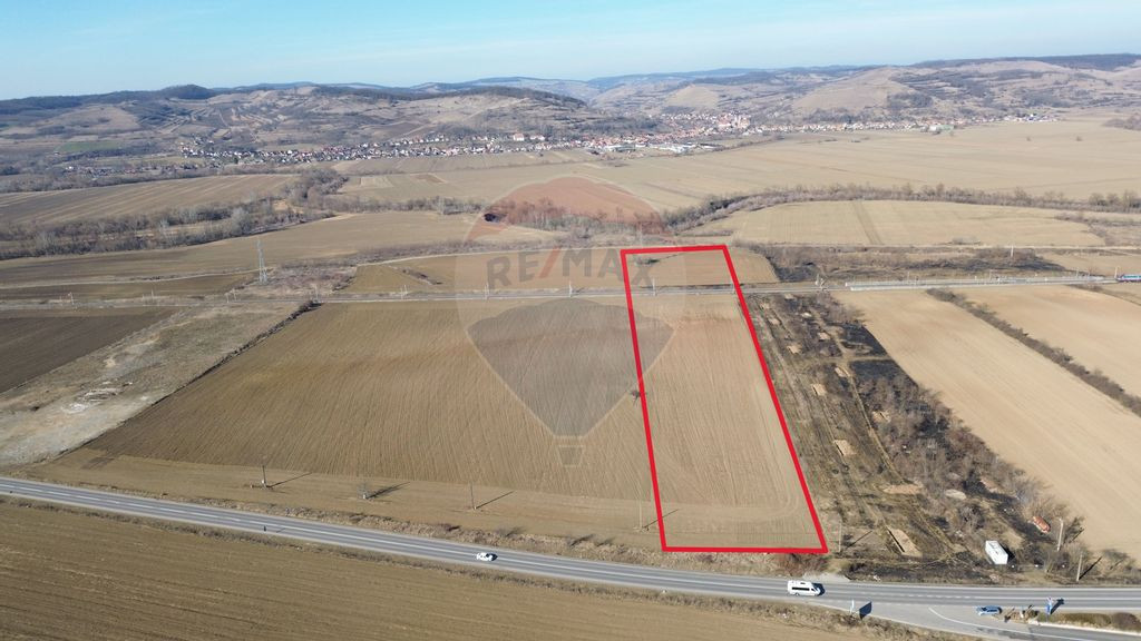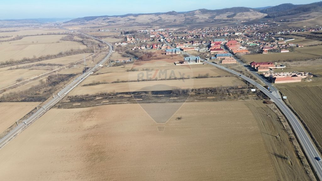 Vă prezentăm un teren generos, situat strategic într-o zonă cu potențial ridicat de dezvoltare. Cu o suprafață de peste 10.000 mp, acest teren extravilan se află pe Drumul Național 14, într-un punct-cheie între Mediaș și Sighișoara, chiar la intrarea în satul Brateiu. Caracteristici Principale: • Suprafață: Peste 10.000 mp; • Deschidere: 24 metri la DN14, oferind acces facil și vizibilitate excelentă; • Utilități: La aproximativ 80 m de teren există locuințe construite; • Orientare: Expunere sudică, ideală pentru proiecte de energie solară; • Transport & Accesibilitate: Situat pe un drum național circulat, cu infrastructură feroviară în spate (cale ferată dublă Sighișoara-Mediaș). Oportunități de Dezvoltare: Datorită poziției sale avantajoase și a accesului excelent, acest teren este potrivit pentru diverse proiecte, printre care: • Parc de panouri fotovoltaice - beneficiind de expunerea sudică optimă pentru captarea energiei solare; • Dezvoltări comerciale sau industriale, profitând de conexiunea feroviară și rutieră; • Spații logistice sau depozite, având acces rapid către principalele orașe din zonă. Acest teren reprezintă o oportunitate excelentă pentru investitori care caută un spațiu bine poziționat, cu un potențial mare de creștere.