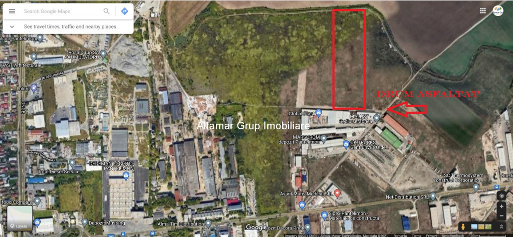 Teren extravilan 30.000 mp – Pantelimon | Zona industriala in dezvoltare | Deschidere 76 m Oportunitate rara de investitie intr-o zona industriala consacrata din proximitatea Bucurestiului. Va prezentam spre vanzare un teren extravilan cu suprafata de 30.000 mp, amplasat strategic in orasul Pantelimon, in imediata vecinatate a platformelor Global Plast si Iveco Truck Service. Proprietatea beneficiaza de o dubla deschidere de 76 metri, asigurand acces facil si versatil pentru diverse functiuni logistice, industriale sau comerciale. Caracteristici esentiale: Suprafata totala: 30.000 mp (teren extravilan); Deschidere: 76 m (dubla); Forma terenului: regulata, ideala pentru parcelare ulterioara. Acces direct: drum pietruit, cu deschidere spre zone industriale active. Utilitati: Energie electrica si gaze naturale – disponibile in proximitatea imediata, racordare facila. Alte utilitati publice – in zona (canalizare si apa disponibile la distanta rezonabila). Zona industriala activa, la limita orasului Pantelimon. Acces rapid la: DN3, Autostrada A2, Centura Capitalei. In apropiere: Global Plast, Iveco, zone logistice si de productie. Destinatii posibile: Dezvoltare parc logistic / hale industriale, statii service, flote auto, parcuri utilaje, depozitare, productie, investitie pe termen mediu si lung. Pentru detalii suplimentare, schite sau o vizionare la fata locului, va rugam sa ne contactati.