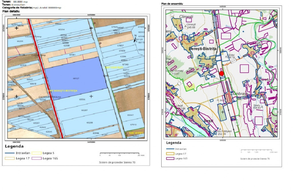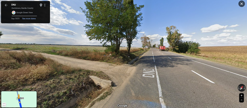 Persoana fizica, vand teren extravilan la E85, cu o suprafața totala de 88.880 mp. Ca localizare, terenul apartine de comuna Beresti Bistrita si este pozitionat la ieșirea din Dumbrava spre Roman(Neamt) și are deschidere de 240 m la E85. Accesul la teren se face direct din E85 sau un drum lateral. Distanța până la Bacău 14,8 km, la autostrada Moldovei este de 4,3 km, iar până la Roman - 28 km( DN2 E85). Schița cadastrală și poziționarea se pot vedea în imaginile atașate. Acte cadastrale in regula. Pret de vanzare 3 euro mp.