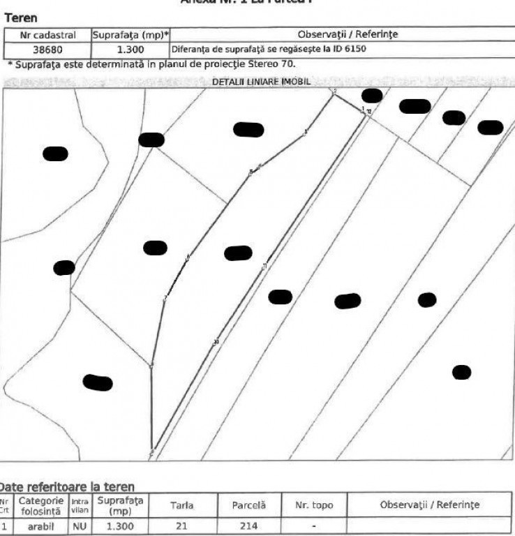 Se vinde prin licitatie publica teren extravilan Teren in suprafata de 1.300 mp, avand categorie de folosinta “arabil”, situat in tarla 21, parcela 214, str. Ciprian Porumbescu, com. Bosanci, jud. Suceava accesul se face dintr-un drum de pietruit. Proprietatea imobiliara evaluata, dispune de acces la reteaua de curent electric, aceasta fiind cu destinatie ”arabil/faneata” nu se poate estima deschiderea