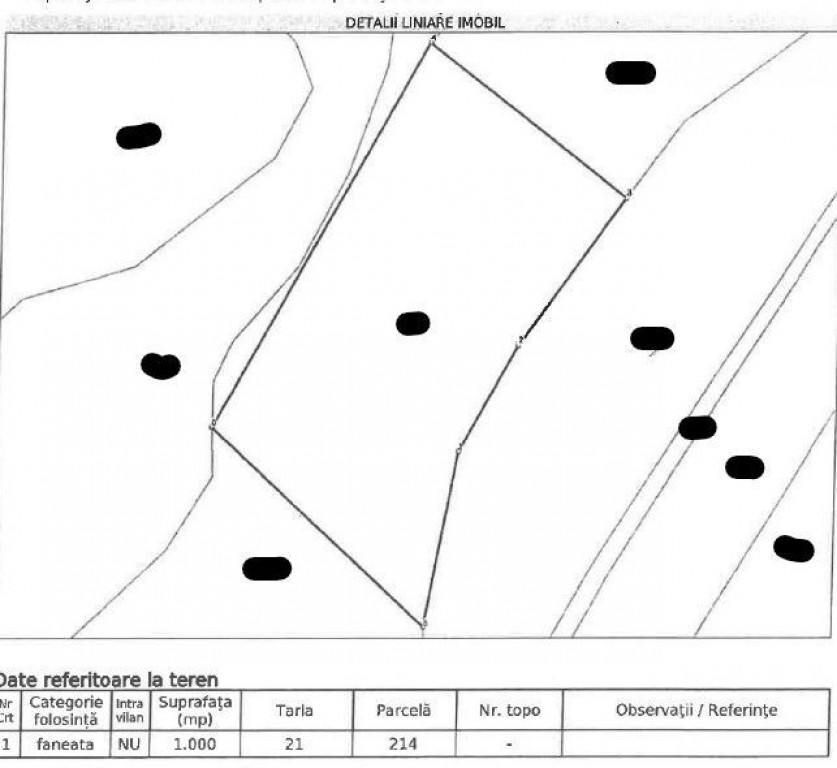 Se vinde prin licitatie publica teren extravilan Teren in suprafata de 1.000 mp, avand categorie de folosinta “faneata”, situat in tarla 21, parcela 214, str. Ciprian Porumbescu, com. Bosanci, jud. Suceava Proprietatea imobiliara evaluata, dispune de acces la reteaua de curent electric, aceasta fiind cu destinatie ”arabil/faneata” nu se poate estima deschiderea