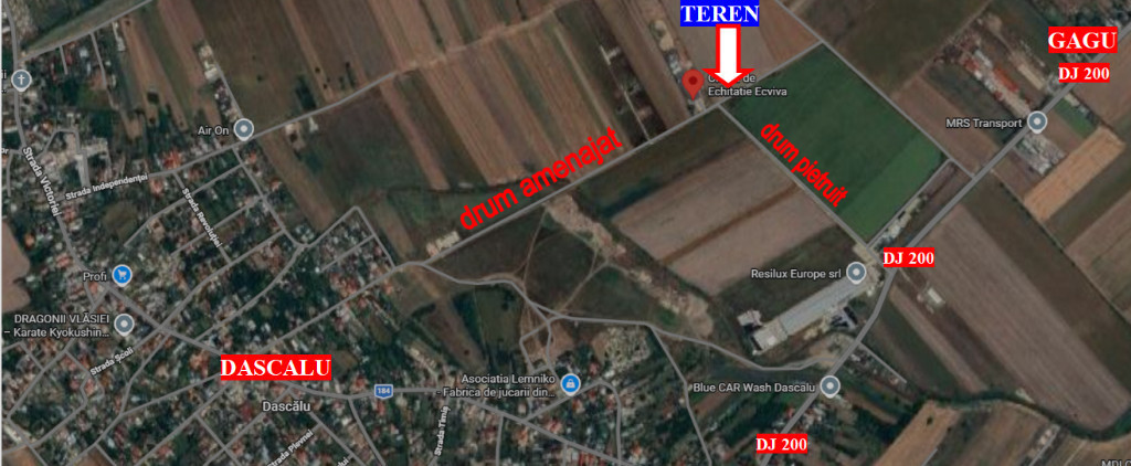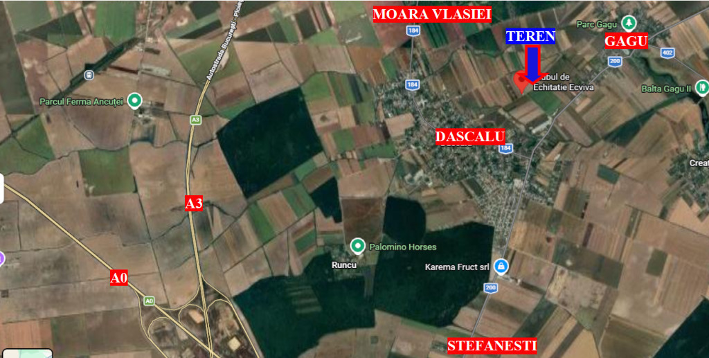 Excelenta oportunitate de investitie.Teren extravilan in suprafata de 10000 mp, cu deschidere de aproximativ 30 m si lungime de 334 m, situat la iesirea din Dascalu catre Gagu, langa Clubul de Echitatie ECVIVA, intr-o zona in plina dezvoltare, aproape de teren fiind deja cateva case in constructie. AVANTAJE: - Avantaje majore sunt zona si infrastructura in plina dezvoltare atat rezidential cat si comercial, industrial, etc. - Localizare excelentă, acces rapid la Autostrada A0 și Autostrada A3, prin nodul rutier 1 aflat la intersectia cu Soseaua Stefanesti, facilitând legătura cu Bucureștiul și principalele rute naționale și internaționale. - Acces rapid direct la autostrada A3 prin Moara Vlasiei (aproximativ 6 km) - Conexiune rapida catre DN si actuala centura a Bucurestiului - 3 cai de acces catre teren: 1. Acces direct din DJ 200 (drum asfaltat Dascalu-Gagu) pe un drum cadastrat, amenajat si pietruit (pe langa fabrica RESILUX EUROPE) 2. Acces direct pe drum cadastrat si amenajat prin str. Calarasi (vis-a-vis de Primarie) 3. Acces direct pe drum cadastrat prin str. Independentei. - Teren plan intr-o zona fara risc de inundatii Această proprietate reprezintă o alegere excelentă pentru investitori și dezvoltatori care caută teren într-o zonă cu potențial ridicat și perspective reale de creștere. Pret: 17 euro mp negociabil. Nu se vinde parcelat.