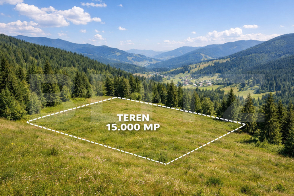 Teren extravilan 15.000 mp – Gura Glodului, comuna Panaci | Zonă montană aproape de Vatra Dornei | Oportunitate de investiție În inima naturii, într-o zonă montană autentică din Țara Dornelor, vă propunem spre vânzare un teren extravilan cu suprafața de 15.000 mp, situat în localitatea Gura Glodului, comuna Panaci, la mică distanță de Vatra Dornei, una dintre cele mai apreciate destinații montane din Bucovina. Proprietatea se află într-un cadru natural deosebit, caracterizat prin pajiști largi, păduri de conifere și priveliști spectaculoase asupra munților, fiind locul ideal pentru cei care caută liniște, aer curat și apropierea de natură. Terenul reprezintă o oportunitate interesantă de investiție pentru dezvoltarea unor proiecte turistice sau de agrement, precum cabane de vacanță, glamping, retreaturi sau proiecte ecoturistice, zona fiind tot mai căutată de turiști și investitori pentru turismul montan. Un aspect important este faptul că terenul nu are în prezent drum direct de acces, însă situația poate fi rezolvată prin înțelegere cu proprietarii terenurilor învecinate, iar actualul proprietar a început deja demersurile în acest sens, ceea ce deschide perspective clare pentru valorificarea terenului. Avantaje ale proprietății: • suprafață generoasă – 15.000 mp • zonă montană liniștită, cu peisaje naturale deosebite • apropiere de Vatra Dornei, stațiune turistică renumită • potențial pentru proiecte turistice sau investiții pe termen lung • demersuri deja începute pentru asigurarea accesului Dacă vă doriți un teren într-o zonă autentică de munte, cu potențial real de dezvoltare, această proprietate poate deveni baza unui proiect special într-o regiune tot mai apreciată pentru turism și relaxare. Pentru detalii suplimentare sau programarea unei vizionări, vă stăm cu drag la dispoziție. Cod ofertă / ID BLITZ: P166136 Id intern: P166136