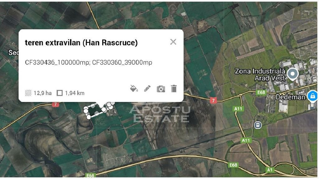 Terenul este situat în extravilanul municipiului Arad, in zona Petrom Hanul de la Rascruce,