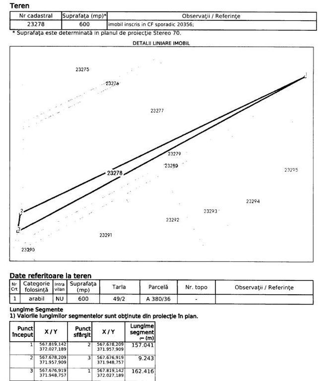 Imobilul se vinde in licitatie publica! Teren extravilan, avand categoria de folosinta "arabil", in suprafata de 600 mp, cu acces din DC 109 B Manesti - Baltita, pe un drum asfaltat, cu o singura banda de mers pe sens.˙ Terenul are o forma neregulata, alungita si are deschidere la drumul de servitute de 9.23 ml..˙ Lotul nu beneficiaza de utilitati publice in zona. Terenul este amplasat in zona sudica, periferica, a localitatii Manesti, intr-o zona agricola, caracterizata prin prezenta unor proprietati de terenuri libere de constructie si aflate in exploatare. Imobilul este situat in Manesti, FN, jud. Prahova.