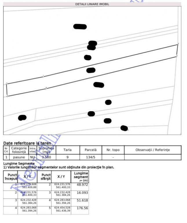 Licitatie publica teren Comuna Ardeoani, judetul Bacau Teren extravilan neimprejmuit avand categoria de folosinta pasune, T9, P134/5 Suprafata teren 3580 mp Vecinatati: terenuri extravilane, cabane de vacanta, case. Utilitati: energie electrica in zona Tip drum de acces: strada asfaltata/pamant Deschiderea de aproximatvi 16 ml