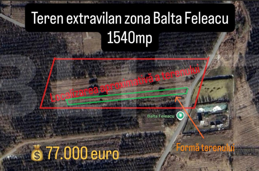Blitz vă propune spre vânzare un teren extravilan de 1540 mp în zona Balta Feleacu. Este un teren foarte potrivit pentru investiție, are acces ușor cu mașina și o priveliște panoramică asupra pădurii și a habitatului natural, aceasta fiind doar la 15 minute de Cluj-Napoca. Terenul reprezintă o oportunitate excelentă de investiție, fiind ideal atât pentru revânzare rapidă, cât și pentru dezvoltări viitoare. Amplasat într-o zonă aflată în plină expansiune, cu potențial ridicat de creștere, acest lot extravilan oferă perspectiva trecerii în intravilan prin elaborarea unui PUZ, ceea ce poate spori considerabil valoarea sa. Accesul facil și deschiderea către o zonă în dezvoltare îl transformă într-o alegere potrivită pentru investitori care urmăresc randamente bune pe termen mediu și lung. Este o parcelă cu potențial solid, pregătită pentru cei care doresc să valorifice oportunitățile imobiliare ale zonei. Pentru mai mai multe informatii sau stabilirea unei vizionari contactati-ne! *Prețul este ușor negociabil Cod ofertă / ID BLITZ: P159886 Id intern: P159886