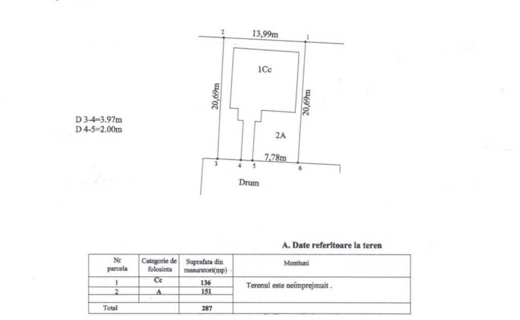 O oportunitate rară: două loturi alăturate, de 287 mp și 331 mp, totalizând 618 mp, situate într-o zonă rezidențială liniștită din Geamăna, Bradu. Caracteristici: - Suprafață totală: 618 mp (se pot vinde și separat) - Deschidere: 29 ml - Utilități: apă, canalizare, gaz, curent electric – toate disponibile la limita proprietății - Documentație: terenuri cadastrate, acte în regulă Avantaje: - Proximitate: la doar 5 minute de Pitești, cu acces rapid către DN65 și autostrada A1 - Infrastructură: stradă asfaltată, iluminat public - Vecinătăți: zonă de case noi, în plină dezvoltare - Investiție sigură: teren intravilan, ideal pentru construcția unei locuințe sau pentru investiție Prețul afișat este pentru vânzarea ambelor loturi (împreună). Pentru mai multe informații sau pentru a programa o vizionare, vă rugăm să ne contactați.