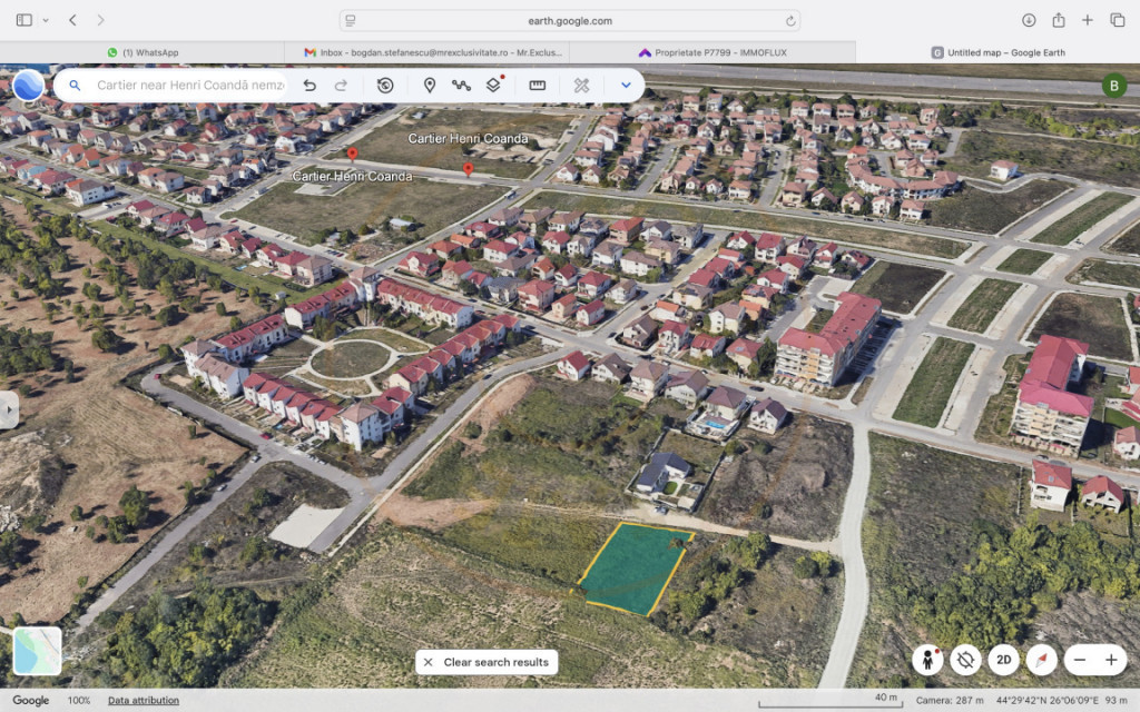 Teren 1.040 mp – Zona Henri Coandă / Nordul Bucureștiului Lipit de Băneasa – Locație ideală pentru o construcție rezidențială Situat în cartierul Henri Coandă, în zona de nord a Bucureștiului, la doar câțiva pași de Băneasa, într-una dintre cele mai dinamice și apreciate zone din oraș., proprietatea are o suprafață generoasă de 1.040 mp, fiind amplasată la aproximativ 30 de metri de cartierul Henri Coandă, într-o zonă aflată în continuă dezvoltare, perfectă pentru o locuință modernă sau un proiect rezidențial. Avantaje esențiale: Localizare premium, în nordul Bucureștiului Acces rapid către Aeroportul Henri Coandă, ideal pentru cei care călătoresc frecvent Proximitate față de Băneasa, zonă cu multiple facilități: centre comerciale, școli, business hubs Zonă liniștită, cu potențial rezidențial excelent Acces facil la arterele principale de circulație Terenul reprezintă o oportunitate rară în această zonă — potrivit pentru dezvoltarea unei case frumoase, luminoase, sau pentru o construcție rezidențială adaptată stilului de viață modern. Poți construi aici un cămin elegant, aproape de tot ce contează în zona de nord a Bucureștiului. Id intern: P7799