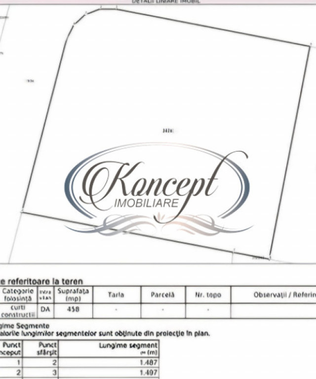 Koncept Imobiliare va ofera spre vanzare un teren intravilan situat in cartierul Faget, zona hotel Stil, intr-o arie rezidentiala apreciata pentru liniste, aer curat si proximitatea padurii. Parcela este retrasa de la strada principala, intr-un context urban aerisit, cu locuinte individuale noi si vecinatati exclusiv rezidentiale. Terenul are suprafata de 458 mp cu front de 21 m, forma regulata, panta foarte mica si beneficiaza de soare pe intreaga durata a zilei. Din punct de vedere urbanistic, parcela dispune de PUZ aprobat si este in curs de autorizare pentru constructia unei case individuale. Regimuri permis este: (S)+P+1+M, (S)+P+1+R, D+P+M sau D+P+R. Proiectul disponibil, in acest stadiu poate fi personalizat in functie de preferintele viitorului proprietar. Utilitatile includ canalizare trasa pana la limita proprietatii, iar apa, gazul si curentul electric se afla la aproximativ 30–40 metri. Accesul este facil, iar nivelul de zgomot este foarte redus, fara trafic intens sau activitati comerciale in proximitate. Printre punctele forte se remarca pozitionarea intr-una dintre cele mai cautate zone de case din Faget, cadrul natural oferit de apropierea padurii, accesul privat, documentatia urbanistica clara si pretul foarte competitiv raportat la piata zonei. Pentru informatii complete, programarea unei vizionari sau pentru a afla oferta noastra completa va stam la dispozitie telefonic, prin e-mail sau la sediul agentiei noastre, pe str. Aviator Badescu, nr. 19, Cluj-Napoca. Id intern: P21052