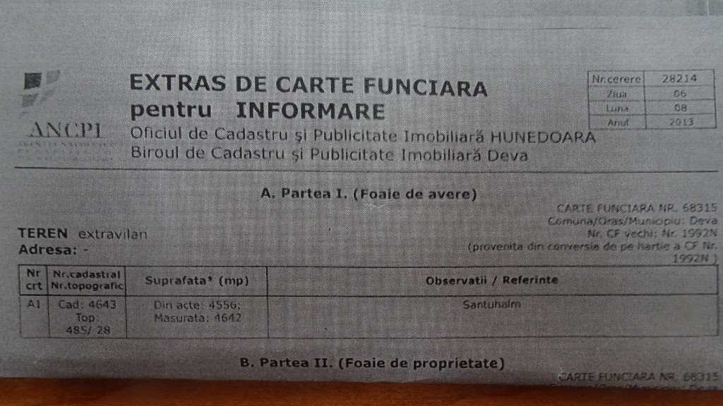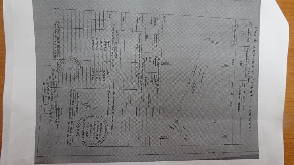 Vand teren in Deva, zona Santuhalm, vis a vis de Carefour, suprafata totala 4556 mp (suprafata masurata 4642 mp), deschidere la strada de 21,59 metri linari, utilitati la strada: apa, curent, canalizare, gaz. Pret: 15 euro/mp neg (68 340 euro neg).Tel: 0724 293226. Mai multe poze si detalii pe www.apartamentedeva.ro sau la Agentia Imobiliara Ovidiu Deva.
