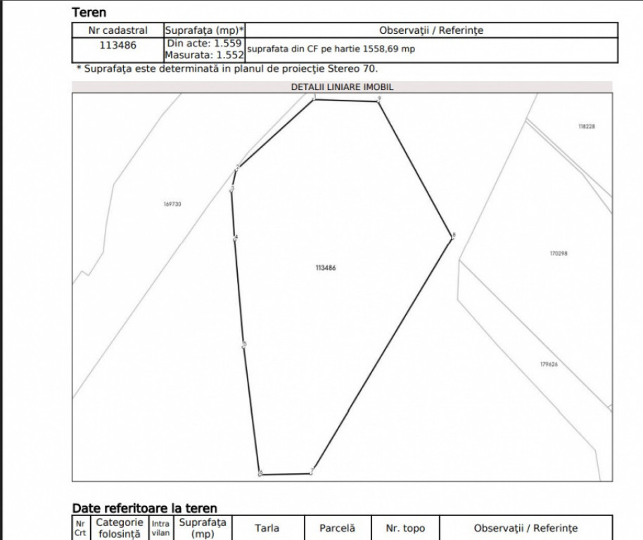 Suprafață teren 1559 m²