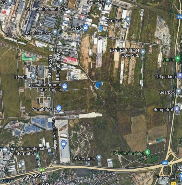 Va prezentam la vanzare un teren format din doua loturi in suprafata totala de 4681 mp + cota parte din drum acces 2281 mp. Terenul se afla in zona Drumul intre Tarlale, o zona in plina dezvoltare si este ideal pentru construirea de hale. Deschidere la drum principal asfaltat d=28 ml precum si la drumul interior de aprox 167 ml. Latimea drumului interior este de 6.15 m. Drumul intern face legatura intre doua drumuri principale asfaltate/betonate. Acces facil TIR. Acces rapid catre autostrazile A2 si A0, centura DNCB, bd. Th. Pallady, Gara Catelu, str. Oxigenului.