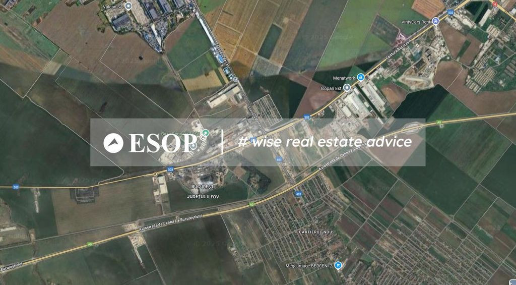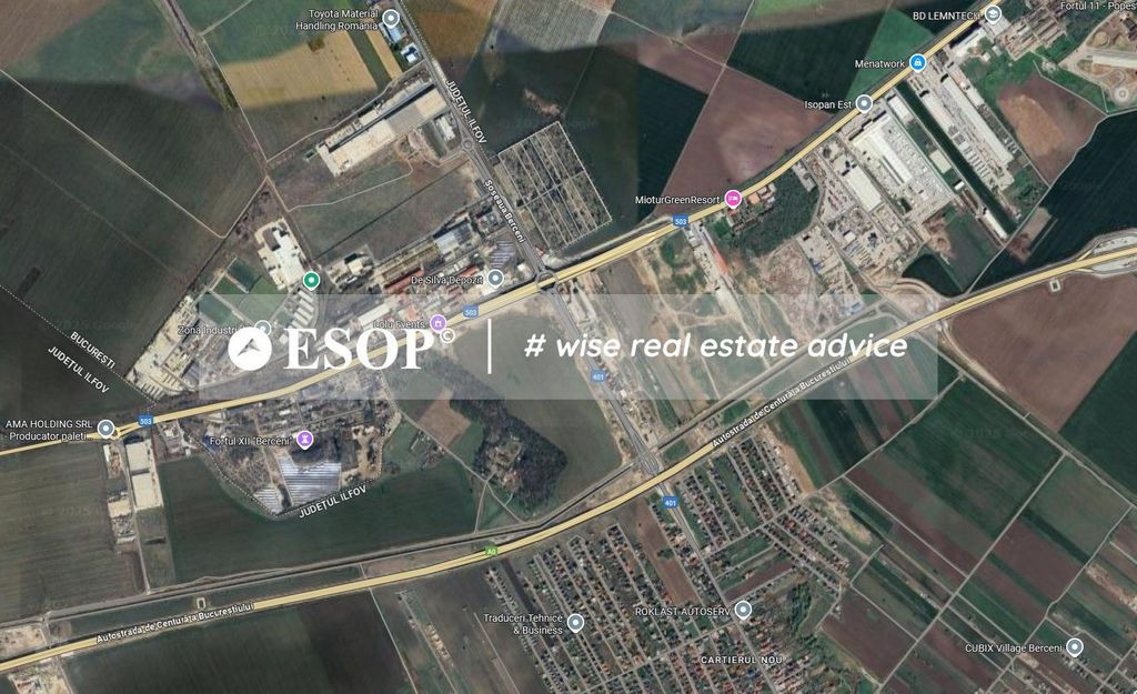 Teren industrial/ dezvoltare – 77.000 mp – Popesti-Leordeni, deschidere la Soseaua de Centura, Pasaj Berceni Intre Centura Capitalei si Autostrada A0 | La mai putin de 1 km de statia de metrou Tudor Arghezi (Berceni) Detalii generale: Suprafata totala: 77.000 mp Deschidere: 150 metri la Soseaua de Centura Acces facil: intre cele doua inele de centura – A0 si Centura Capitalei Localizare premium: in imediata apropiere a Bucurestiului – Popesti-Leordeni Puncte forte: La mai putin de 1 km de statia de metrou Tudor Arghezi (Berceni) Utilitati (energie electrica, apa, gaze, canalizare) disponibile la doar 100 m de teren Ideal pentru dezvoltari logistice, industriale, spatii comerciale sau centre de distributie Zona in plina dezvoltare urbanistica si logistica – acces rapid catre Bucuresti, A2, A0, Centura Date tehnice: Tip teren: intravilan Destinatie logistic/industrial Acces rutier foarte bun, vizibilitate crescuta datorita deschiderii mari Teren compact, cu forma regulata, pretabil pentru investitii de mari dimensiuni Indicatori urbanistici: POT: 70% CUT: 1,5 (15 mc/mp teren) Regim de inaltime: P+4