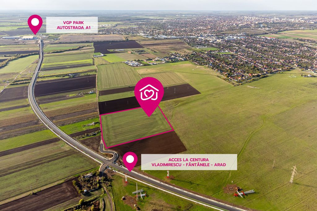 Vă oferim spre achiziție un teren ideal pentru construcții de hale industriale, platforme de depozitare, stație carburanți, parcări TIR-uri. Terenul se află în Arad (în dreptul cartierului Sânicolu Mic) cu acces direct la centura Arad - Fântanele - Vladimirescu. Caracteristici teren: Teren arabil extravilan Arad Suprafață: 45.080 mp Front stradal: 197 m Utilități: în zonă (nu sunt pe teren) Preț: 17 eur/mp (așa cum este terenul acum) + 1 eur/mp dacă se dorește branșament de curent pe parcelă (avans minim 50%) + 3 eur/mp dacă se dorește PUZ (avans minim 50%) Pentru ofice detalii sau vizionare apelați: 0721356746 Florin Moș