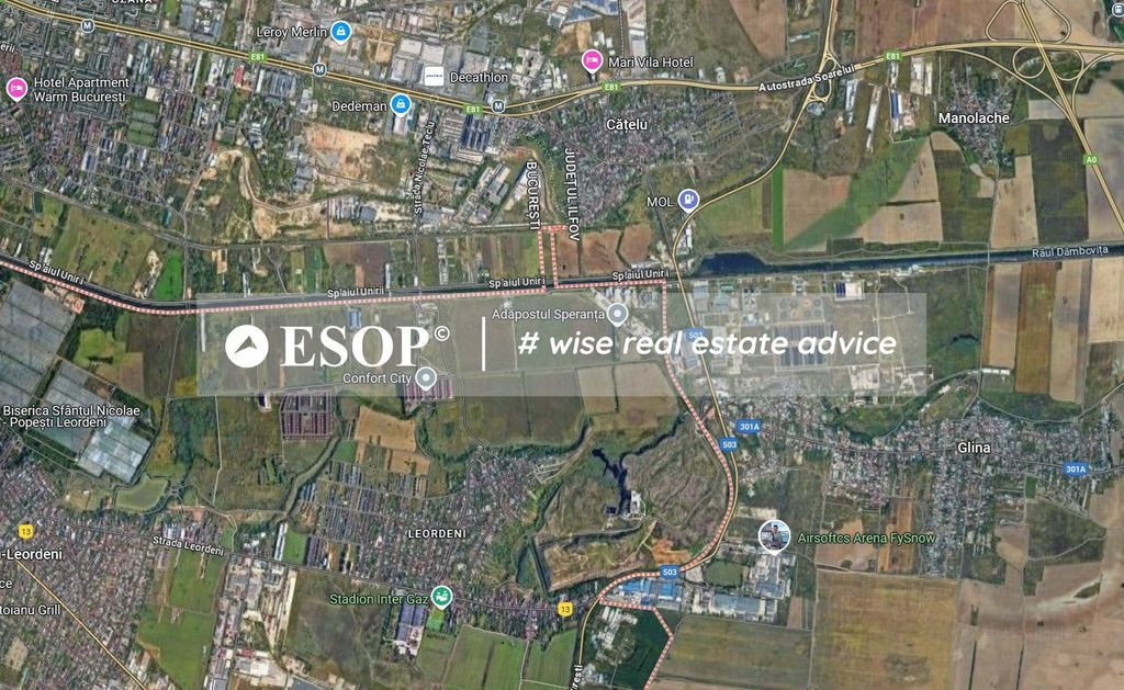 Vanzare teren industrial, intravilan, 75.000 mp, situat strategic aproape de Splaiul Unirii, in Popesti-Leordeni, jud. Ilfov, cu peste 153 m deschidere stradala. Proprietatea beneficiaza de acces rapid la A2, A0, metrou si se afla la doar 10 km de centrul Bucurestiului. Incadrare urbanistica in zona M2 (mixta: industrial, logistic, retail); Acest amplasament este ideal pentru dezvoltari industriale, logistice, comerciale sau mixte. Infrastructura completa, inclusiv linie electrica 220 kV si acces asfaltat pentru trafic greu, recomanda proprietatea ca o investitie solida, intr-o zona industriala in plina expansiune, cu vizibilitate excelenta si potential semnificativ de dezvoltare. Suprafata teren: ~75.000 mp Deschidere la strada: 153m Regim urbanistic: Teren intravilan arabil, zona M2 (mixta: industrial, comercial, retail) POT: 50% | CUT: 1.5 | Regim inaltime: P+2 PUZ: Nu este necesar | Certificat urbanism: mai 2025 – se poate aplica direct pentru autorizatie de construire Utilitati: Linie electrica 220 kW, canalizare in proximitate Acces: Drum asfaltat, ideal pentru trafic greu Localizare premium, acces exceptional: Situat in Popesti-Leordeni, jud. Ilfov, terenul beneficiaza de o pozitionare strategica, foarte aproape de Splaiul Unirii, cu acces direct catre infrastructura rutiera majora si centre logistice: 9,9 km / 17 min pana in Piata Unirii 35-40 min cu transport public pana in centrul orasului Metrou Anghel Saligny – la doar 2,5 km 3 km pana la Autostrada A2 (Bucuresti – Constanta, parte din Coridorul IV Pan-European) Acces rapid la A0 (noua Centura a Bucurestiului) si viitorul Drum Radial 7 Zona intens dezvoltata industrial, cu numeroase facilitati de productie si logistica Avantaje cheie: Teren cu expunere urbana si conectivitate internationala Destinatii multiple permise: industrial, depozitare, retail, centre logistice sau dezvoltari hibride Investitie sigura, cu potential ridicat de dezvoltare, amplasat in unul dintre cele mai dinamice coridoare industriale ale Capitalei Recomandat pentru: Dezvoltatori imobiliari, companii de logistica, productie, investitori institutionali care cauta o locatie strategica cu acces rapid la infrastructura urbana si nationala.