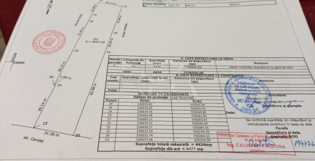 R.E.A. Imobiliare va ofera spre vanzare teren intravilan, incadrat in categoria constructii la intrare in CFR pROGRESUL , in vecinatatea la Dedeman Giurgiului. Terenul dispune de o suprafata de 4434 m.p, cu un fronti stradal de 32 m.l. Utilitati: apa, gaze, energie electrica, la limita de proprietate Se accepta toate modalitatile de plata pentru achizitie. Informatiile tehnice au caracter orientativ, acestea fiind preluate de la proprietari. Pentru mai multe detalii si vizionari, ne puteti contacta telefonic, specificand codul de identificare P4935 Id intern: P4935