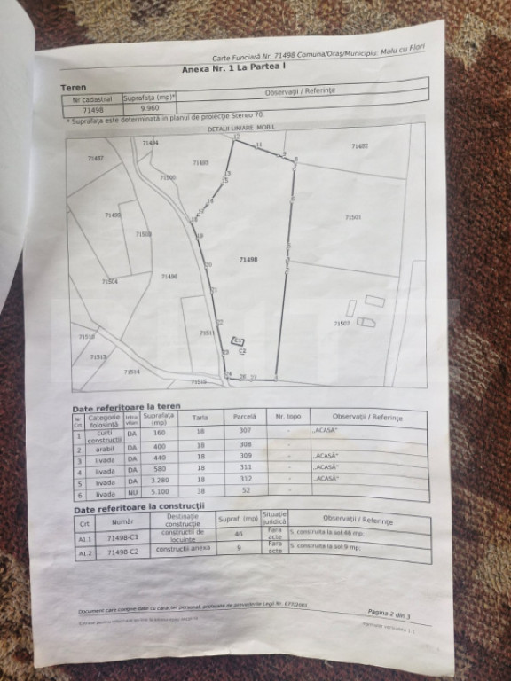 Blitz vă propune spre vânzare un teren intravilan, cu suprafața generoasă de 10.000 mp, situat în localitatea Malul cu Flori, într-o zonă deosebită, înconjurată de natură și pădure, ideală pentru dezvoltarea unui proiect turistic sau de relaxare. Proprietatea beneficiază de o deschidere de aproximativ 40 metri liniari, oferind acces facil și multiple posibilități de parcelare sau dezvoltare. Terenul este perfect pentru realizarea unui complex de tip A-Frame, cabane de vacanță, pensiune, glamping sau centru de relaxare, datorită poziționării sale într-un cadru natural deosebit, cu potențial turistic ridicat. ???? Caracteristici principale: Tip: Teren intravilan Suprafață: 10.000 mp Deschidere: ~40 m Zonă: pădure / natură Acces facil ???? Utilități: Apă, curent, gaz – disponibile peste drum Posibilitate rapidă de racordare ???? Avantaje: ✔ Locație liniștită, aer curat, peisaj spectaculos ✔ Potențial excelent pentru turism și agrement ✔ Zonă în dezvoltare ✔ Investiție sigură pe termen lung Terenul reprezintă o oportunitate rară pentru investitori sau antreprenori din domeniul turismului, dar și pentru cei care își doresc o proprietate într-un cadru natural exclusivist. ???? Pentru mai multe informații și programarea unei vizionări, vă stau la dispoziție! Cod ofertă / ID BLITZ: P164105 Id intern: P164105