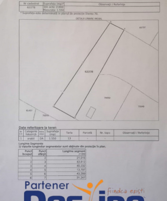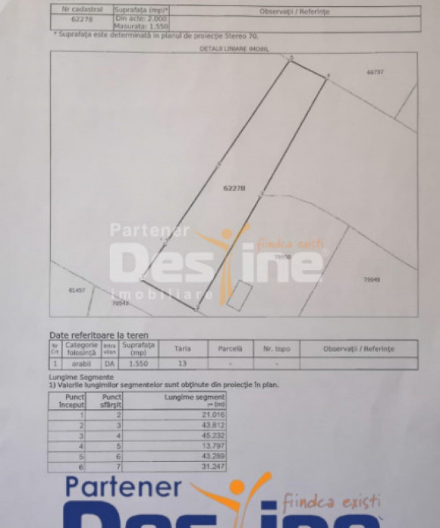 DESTINE IMOBILIARE Iași vă recomandă teren INTRAVILAN, cu un front stradal de 21 m liniari, având o suprafață de 1550 mp în zona Vorovesti - MIROSLAVA. Terenul beneficiaza de toate utilitatile la limita proprietatii, canalizarea in apropiere, dar si de toate punctele de interes. Amplasat la drum asfaltat, într-o zona liniștită și panoramica. Documentația pentru perfectarea vânzării este la zi. Prețul de vânzare este 54.000 € , usor negociabil. Detalii și informatii suplimentare: Ilie Loghin – 0757.910.832 COD OFERTĂ: P-2554 Id intern: P2554