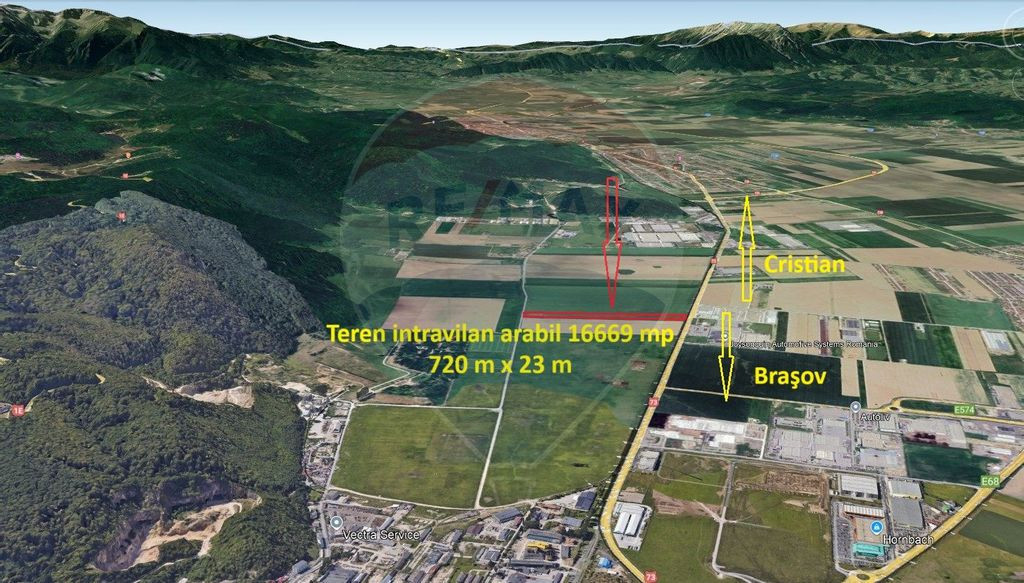 Agentia REMAX EVOLUTION vă propune spre vânzare, în regim de reprezentare exclusivă, cu comision 0% din partea cumpărătorului: Teren intravilan, arabil, neîmprejmuit, 16669 mp, cu front de 23 m şi adâncime de 720 m, situat între Braşov şi Cristian, vis-a-vis de Volvo Trucks. Vă mulţumim şi vă stăm la dispoziţie cu detalii suplimentare despre acest teren.