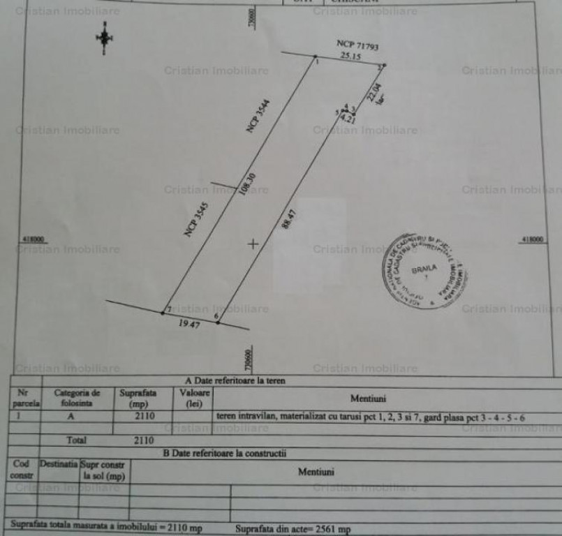 Teren intravilan de constructii zona Varsatura * cu o suprafata de 2100 mp, * deschidere de 19 m. * Se preteaza pentru constructii investitie cadastru, toate actele la zi, * Posibilitati utilitati * Pret 40 Euro/mp Cristian Imobiliare - din 1993 Primii in Braila CRS1064 amp;11