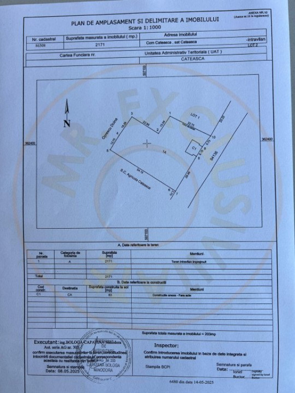 Oferim spre vânzare un teren INTRAVILAN in Localitatea Cateasca, Judet Arges drumul DJ703B, in suprafata de 2171 mp, cu o deschidere de 49 ml din strada princilala asfaltata. Dispune de toate utilitatile, curent, apa, gaze la limita terenului. Terenul are un amplasament favorabil pentru activități logistice, industriale, dezvoltări comerciale construcții ,hale, depozite sau spații de stocare. Poziție excelentă, cu vizibilitate directă din strada principala având acces rapid către infrastructura rutieră majoră. Pentru mai multe detalii, documentație sau stabilirea unei vizionări, vă stau la dispoziție. Comision 0 % pentru cumparator! Id intern: P6963