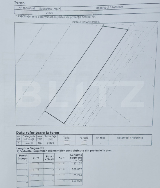 Blitz vă propune spre vânzare un teren intravilan, cu suprafața totală de 2.829 mp, situat într-o zonă în plină dezvoltare, ideal pentru investiție pe termen lung sau dezvoltarea unei activități economice. Detalii teren: Suprafață: 2.829 mp Front stradal: 27 metri Lungime: 108 metri Drum de acces lateral de 5 metri pe toată lungimea terenului Acces facil spre drum național / centură / drum expres Poziționat în apropiere de Lacu Vrăjitoru și Reprezentanța Peugeot Simode Avantaje și potențial: Zonă aerisită, retrasă de la agitația rezidențială, cu deschidere spre multiple posibilități de dezvoltare Teren pretabil pentru parcelare și revânzare, construcție hale, activități recreative (zone relaxare, petreceri private, evenimente) Datorită poziției și distanței față de construcțiile rezidențiale, terenul permite dezvoltarea unor proiecte cu specific comercial sau de agrement Utilități prin surse alternative (panouri solare, put forat), cu opțiuni de extindere în viitor Recomandat investitorilor orientați spre dezvoltări pe termen mediu și lung. Terenul beneficiază de acces rapid la oraș, dar păstrează intimitatea unei zone neaglomerate. Pentru detalii suplimentare și vizionare, vă stăm la dispoziție! Cod ofertă / ID BLITZ: P148953 Id intern: P148953
