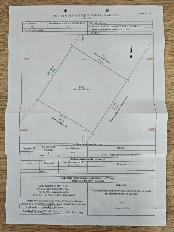 317 mp, lotul al 3-lea de la strada primăverii. Acces facil, utilitati in apropiere, deschidere stradala 18 m, este ideal pentru a construi casa visurilor dumneavoastră. Stații STB acoperite – liniile 438 și 475 Bdul. principal amenajat cu pistă de biciclete, trotuare , spații verzi și iluminat public Gradinte, scoli, afterschool, centre activitati extracurriculare copii Centre comerciale (Carrefour, Mega Image, Pepco, etc.) Comuna Berceni este într-un proces amplu de dezvoltare, având în derulare mai multe proiecte: Sensul giratoriu suspendat peste linia de centură Autostrada A0 Parcare de tip “Park & Ride” Extindere M2 - stație metrou “Centura Berceni” Utilitati la 170 metri. Actele pregatite pentru vanzare Link Google Maps: 44.29040, 26.20824 Distante: Aproximativ 170 m de cea mai apropiata casa (linie dreapta) Aproximativ 350 m de proiectul Lebada (linie dreapta) 2.9 km pana la Primaria Comunei Berceni (pe sosea) 2.8 km pana la scoala comunei (pe sosea) 7.8 km pana la metroul Tudor Arghezii (pe sosea)