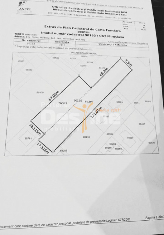 EXCLUSIVITATE - COMISION ZERO % Teren 3.315 mp Intravilan – Tudor Neculai, CUG Locație: Str. Tudor Neculai (700m de Șos. Nicolina) | Preț: 829.000 € | Comision: 0% DATE TEHNICE (Ready-to-Build) Suprafață: 3.315 mp compacti (geometrie optimă pentru parcelare). Utilități la poartă: Gaz, Curent, Apă, Canalizare. Lungime - 121 ml Lățime - 35.5 ml Siguranță Juridică: Rețea înaltă tensiune dezafectată. Avize Disponibile: Acord favorabil FORTUS și aviz pozitiv DELGAZ GRID pentru construcție. LOCALIZARE & ACCES Poziționare: Zonă rezidențială matură, complet dezvoltată (fără șantiere active adiacente). Calitatea mediului: Zonă aerisită, fără poluare fonică sau praf. Accesibilitate: Cale de acces privată de 7.5 m lățime, direct din asfalt. Securitate: Perimetru împrejmuit integral; acces cu porți automatizate. POTENȚIAL DEZVOLTARE Destinație: Rezidențial (case/duplex/colectiv mic), Comercial sau Proiect Mixt. Randament: Risc minim datorită infrastructurii deja existente și cererii ridicate de locuințe în zonă. Lichiditate: Terenul permite dezmembrarea în loturi mai mici pentru vânzare rapidă sau dezvoltare etapizată. AVANTAJE ACHIZIȚIE Tranzacție Rapidă: Toate actele sunt pregătite; posesia se transmite la notariat. Fără investiții ascunse: Teren curat, sistematizat, fără sarcini tehnice. Finanțare: Asistență gratuită prin broker dedicat pentru soluții de creditare. Programează acum o viziță la locație. Cod Ofertă: P-4670 Id intern: P4670