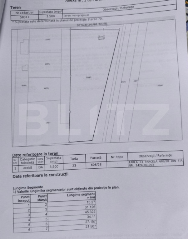 BLITZ va propune spre vanzare un teren intravilan, cu o suprafata de 3.500 mp, situat pe strada Dr. Kis Zoltan intr o zona in plina dezvoltare. Proprietatea este ideala atat pentru investitie cat si pentru dezvoltari rezidentiale (case) sau constructii industriale (hala) Terenul benificiaza de: -deschidere la drum de aproximativ 31m -acces la utilitati -acces facil pe strada asfaltata -carte funciara disponibila Zona este in continua expansiune, oferind un potential ridicat de valorificare pe termen mediu si lung. Incadrarea in imaginile din drona nu este una exacta, este doar pentru a pozitiona terenul in imagine, dimensiunile terenului sunt in extrasul CF. Pentru detalii suplimentare sau programarea unei vizionari, va stam cu placere la dispozitie. Cod ofertă / ID BLITZ: P164804 Id intern: P164804