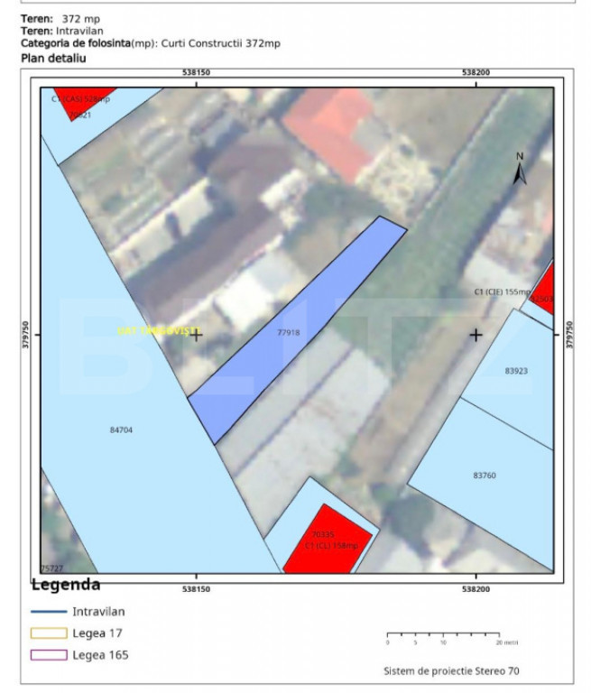 Blitz va propune spre vânzare teren intravilan situat pe Calea București, la intrare în Municipiul Târgoviște, poziționat între proprietăți construite (locuință și spațiu comercial), cu acces direct din arteră principală. Suprafață măsurată: 372 mp Deschidere la stradă: 9,81 ml Regim urbanistic – subzona LMu2 (rezidențial urban): * Regim de înălțime permis: P, P+1 sau P+2 (maxim 10 m) * POT maxim 45% * CUT maxim 1,3 * Autorizare directă pentru locuință unifamilială Teren potrivit pentru: – casă individuală modernă – locuință cu birou sau cabinet profesional – investiție rezidențială într-o zonă cu vizibilitate bună - acces facil către oraș și ieșire rapidă spre București. Pentru detalii si vizionari nu ezitati sa ne contactati! Cod ofertă / ID BLITZ: P164175 Id intern: P164175