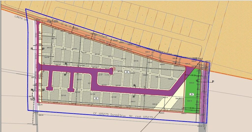 Terenul propus spre achizitionare este parcelat, exista 48 de parcele cu suprafata cuprina intre 500mp si 600mp.
