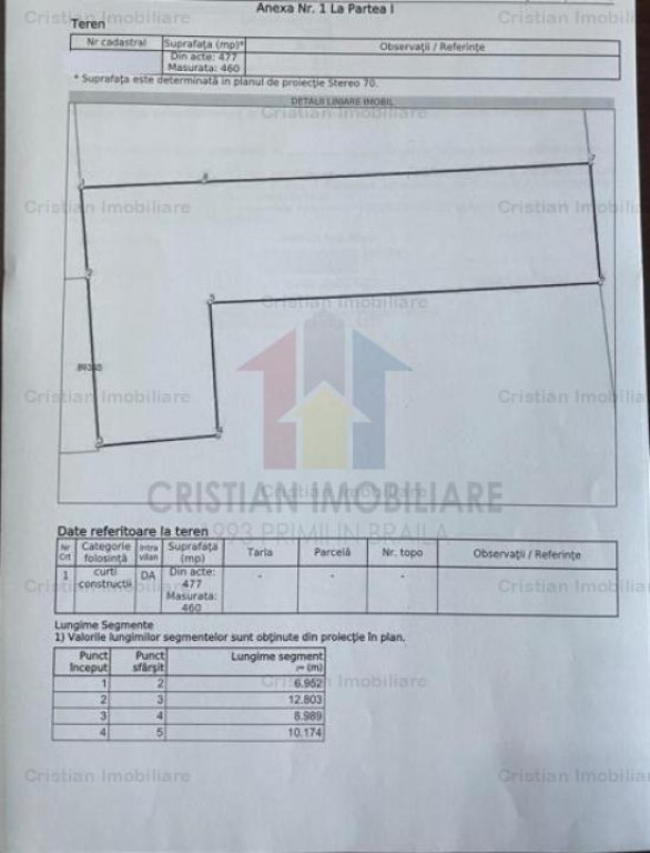 Teren intravilan de constructii, zona Centrala, * Suprafata 460 mp * deschidere 9 m, * posibilitati de utilitati: apa, gaze, canalizare, curent electric, * Pret 130 euro/ mp * Teren imprejmuit Cristian Imobiliare - din 1993 Primii in Braila CRS752 amp;08