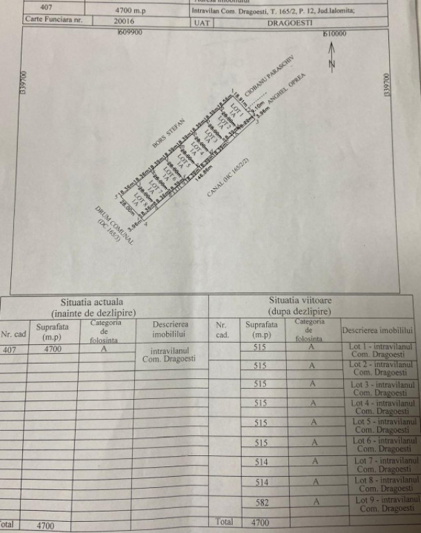 Teren intravilan 4.700 mp parcelat in loturi de 500 mp lâng