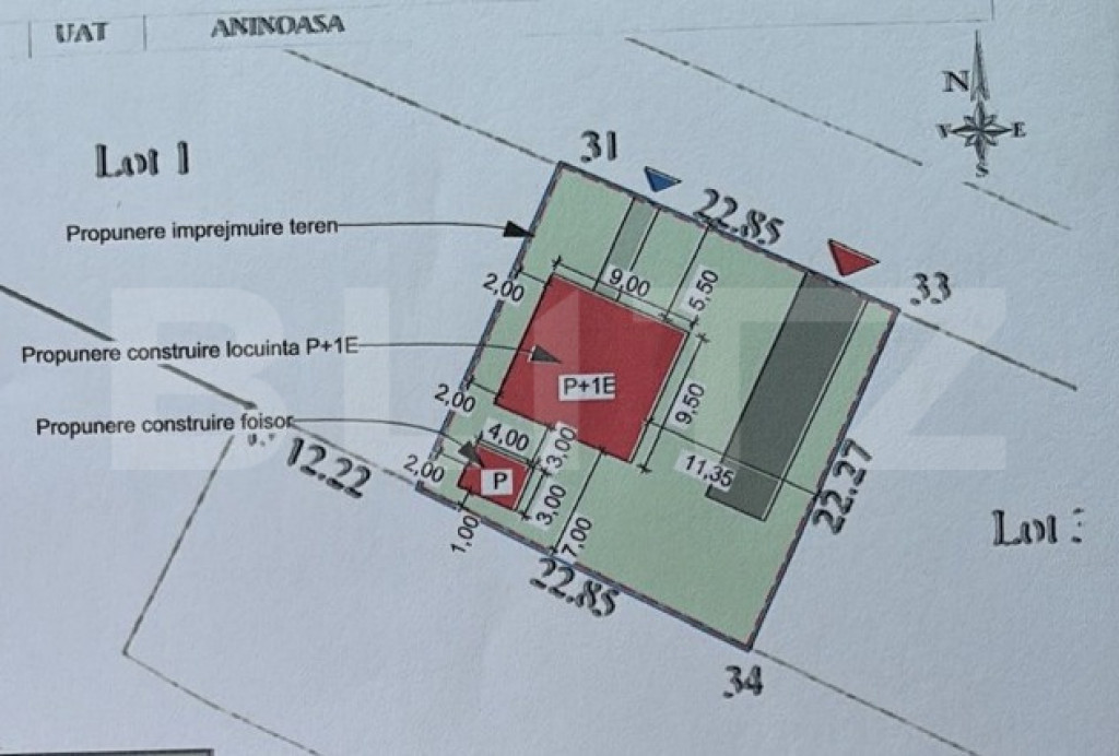 Blitz vă propune spre achiziție un teren intravilan cu poziționare strategică, ideal pentru dezvoltare rezidențială imediată, situat la intrare în Viforâta (com. Aninoasa), la câteva minute de municipiul Târgoviște. ________________________________________ ???? Localizare premium & accesibilitate ➤ 500 m față de DN71 ➤ 30 m până la drumul județean principal ➤ 3,5 km până în centrul Târgoviștei ➤ acces rapid către transport public și artere rutiere majore ➤ zonă în dezvoltare, cu locuințe în proximitate ________________________________________ ???? Caracteristici teren ▪ Suprafață: 500 mp ▪ Formă: pătrată – optimă pentru locuință eficientă ▪ Deschidere: 22,8 m la drum de servitute ▪ Poziționare: al doilea lot de la strada principală (intimitate + protecție față de trafic) ▪ Vecinătate: proprietate edificată pe latura din spate ________________________________________ ⚙️ Utilități ✔ Apă și canalizare pe proprietate ✔ Curent electric și gaze la ~30 m de limită ________________________________________ ???? Documentație completă – avantaj major ???? Autorizație de construire emisă ???? Proiect tehnic aprobat ???? Posibilitate de modificare și personalizare a proiectului ________________________________________ ???? Argumente investiționale ★ Teren pregătit pentru construcție imediată ★ Costuri reduse și timp scurt până la începerea lucrărilor ★ Poziționare excelentă pentru locuință individuală ★ Oportunitate pentru dezvoltatori – construcție + revânzare ________________________________________ ???? Proprietatea reprezintă o opțiune solidă atât pentru rezidență personală, cât și pentru investiție, într-o zonă cu mobilitate bună și potențial de creștere. Cod ofertă / ID BLITZ: P164733 Id intern: P164733