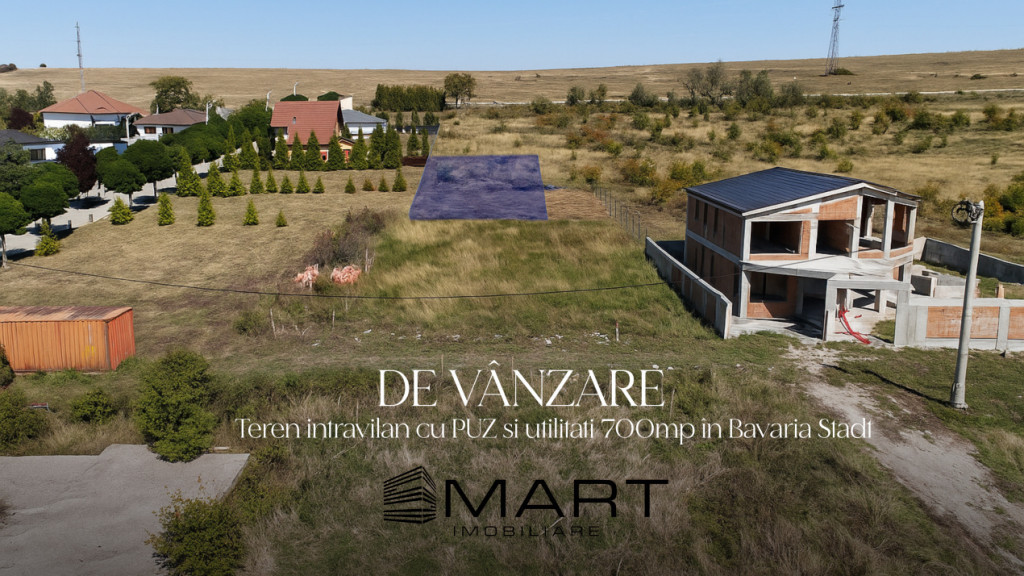 Smart Imobiliare vinde teren intravilan cu PUZ situat in cartierul Bavaria. Suprafata terenului este de 700 mp si se poate construi casa individuala cu 1 nivel sau P+1/M. Utilitatiile existente sunt curent, apa si canalizare. Terenul are o deschidere de 40ml la drum. Pentru mai multe detalii si stabilirea unei vizionari, precizati ca ati vazut anuntul cu ID: P15887 Id intern: P15887