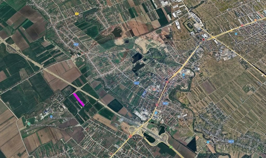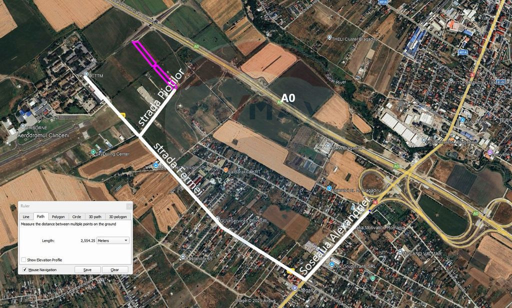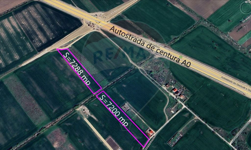 Terenul intravilan cu suprafata de 7209 mp si deschidere de 32 m la strada Pilotilor se afla intr o zona cu potential fiind in apropierea nodului rutier Soseaua Alexandriei- Autostrada de centura A0.Accesul in autostrada A0 se face prin Strada Fermei si Soseaua Alexandriei iar distanta este de aproximativ 2,5 km.Din punct de vedere urbanistic se afla in zona L1 avand POT 35% si CUT 1,4.Se preteaza pentru dezvoltarea unui proiect rezidential de case P+2E+M.De asemenea, se poate construi si un proiect logistic/ depozitare, asa cum mai sunt in vecinatati.. In prelungirea acestui teren se afla o alta parcela cu suprafata de 7288 mp cu deschidere in Soseaua Ordoreanu ce traverseaza autostrada A0.Cele doua loturi se pot achizitiona impreuna sau separat.