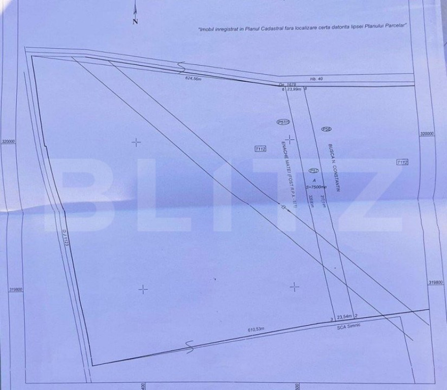 BLITZ propune spre vânzare un teren intravilan 7500 mp, situat in apropiere de o zona de case mai exact pe Aleea 1 Craiova, în localitatea simnicul de sus, la 10 minute de centrul orașului. Terenul are un front de 24 ml iar ca utilități avem următoarele: apa și curentul electric la doar 200 mp, gazele la stradă, iar canalizarea la strada principală. Există și posibilitatea achiziționării în bloc sau parcelat cu un preț aplicat pe varianta aleasă. Vă așteptăm cu mai multe detalii la vizionare. Cod ofertă / ID BLITZ: P100184 Id intern: P100184