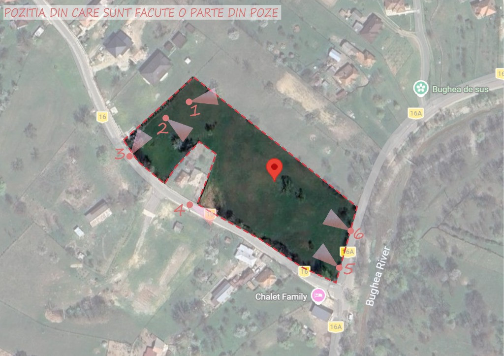 Imaginează-ți că te trezești în fiecare dimineață cu muntii în față. Acest teren de 8.554 mp în Bughea de Sus, Argeș, face exact asta posibil. Ce cumperi, concret. Un teren intravilan cu destinație rezidențială, cu două fronturi stradale generoase — 52 m la strada Râului și 145 m la strada Moicenilor, ambele asfaltate și recent modernizate. Suprafața totală îți oferă libertate deplină în a imagina o proprietate pe măsura așteptărilor tale, fără compromisuri. Relieful lucrează pentru tine. Panta naturală dintre cele două străzi nu este un obstacol — este un avantaj arhitectural. O casă ridicată pe acest teren poate valorifica diferența de nivel pentru terase, priveliști etajate și o prezență vizuală puternică în peisaj. Vecinii au înțeles deja asta: în imediata apropiere există vile moderne recent finalizate. Utilități și acces — fără surprize. Apa, canalizarea și electricitatea sunt disponibile. Gazul natural nu este racordat în zonă. Drumul de acces este asfaltat pe ambele laturi. La aproximativ 7 km se află municipiul Câmpulung — toate serviciile la îndemână, fără agitația orașului. Râul și muntele — cadrul natural inclus. Terenul se învecinează cu strada Râului, în imediata apropiere a apei. Privind în direcția opusă, munții completează un tablou pe care nu îl găsești la orice proprietate. Acte — totul în regulă. CF la zi, intabulat. Fără sarcini, fără complicații. Cum funcționează galeria foto. Vei găsi fotografii numerotate de la 1 la 6 și o hartă satelitară cu pozițiile exacte din care a fost realizată fiecare imagine — știi mereu ce parte a terenului privești și din ce unghi. Fotografiile nenumerotate completează tabloul cu detalii suplimentare. Coordonate teren: 45°17'32.23"N 25°01'18.40"E