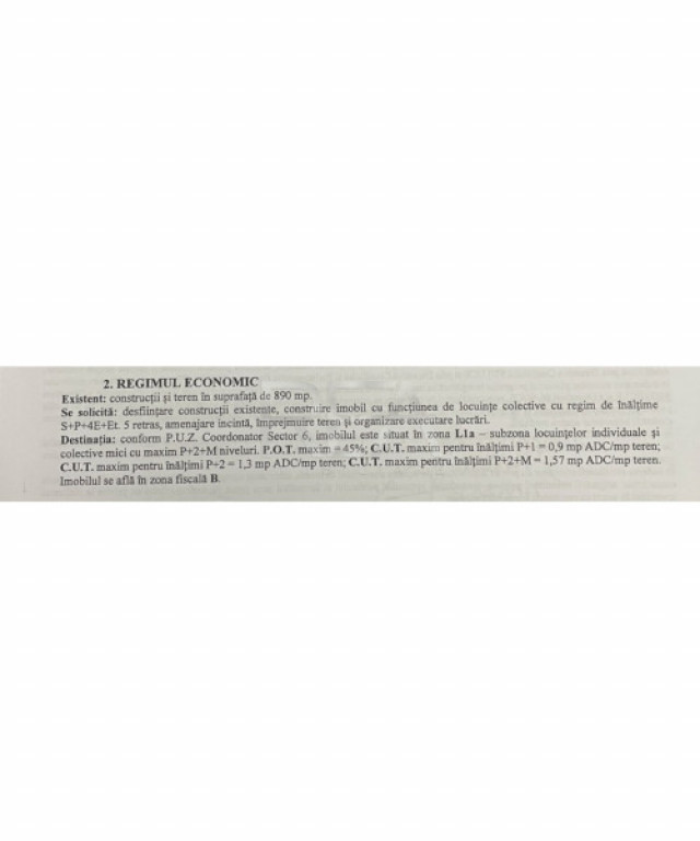 •. P.O.T. maxim = 45% - C.U.T. maxim = 1,6 mp ADC/mp teren.