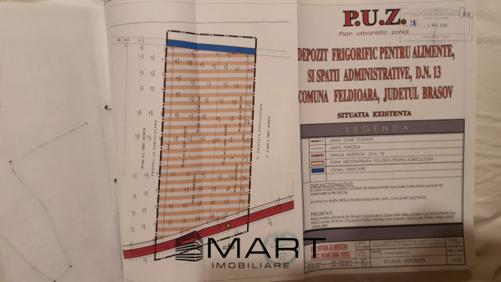 Smart Imobiliare vă propune spre vânzare un teren intravilan cu potențial excelent pentru investiții, situat în zona industrială a municipiului Brașov – DN13, Calea Feldioarei. Detalii generale: Suprafață totală: 14.450 mp Localizare: Calea Feldioarei, DN13 – la intrarea în Brașov Front stradal: aprox. 84 ml Adâncime: aprox. 169 ml Împrejmuit integral cu gard Avantaje și amplasament: Terenul este situat într-o zonă industrială dezvoltată, cu acces facil la infrastructura principală și vecinătate cu companii importante precum Miele Logistics, Olympus, LKY Industrial Clean, Arkada, Reinert. Poziția îl face ideal pentru depozite, spații logistice, birouri, prestări servicii sau activități industriale. Informații urbanistice: • Teren intravilan, zona industrială • P.U.Z. aprobat: construire depozit frigorific pentru produse alimentare, spații administrative și de producție agro-industrială • Certificat de urbanism: * POT – 40% * CUT – 0,5 * Regim de înălțime: P + Supantă (max. 7 m) * Retragere față de aliniament: 54 mp Utilități și infrastructură: Echiparea edilitară se realizează cu branșamente îngropate, terenul fiind ușor accesibil pentru toate racordurile necesare. Coordonate GPS : 45°47'50.0"N 25°35'51.0"E Pentru mai multe detalii sau pentru a programa o vizionare ne puteti contacta si sa specificati ID-ul 18009 Prețul de promovare este de 361.000€ /negociabil în funcție de condițiile stabilite împreună cu proprietarul. Pentru mai multe detalii despre această proprietate și pentru programarea unei vizionări, vă rugăm să contactați consultantul responsabil. Smart Imobiliare vă oferă consultanță completă pe tot parcursul tranzacției, de la prima vizită și până la predarea cheilor. Id intern: P18009