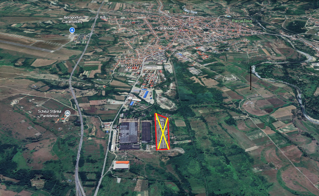 Teren intravilan in suprafata de 77.243 mp si constructia aferenta acestuia, in Caransebes (in spatele societatii Caromet S.A.), constructie nefinalizata , cu utilitati (curent electric, gaz, apa, canalizare) , acces la soseaua de centura a orasului (E70) , acces la calea ferata Caransebes – Otelu Rosu.