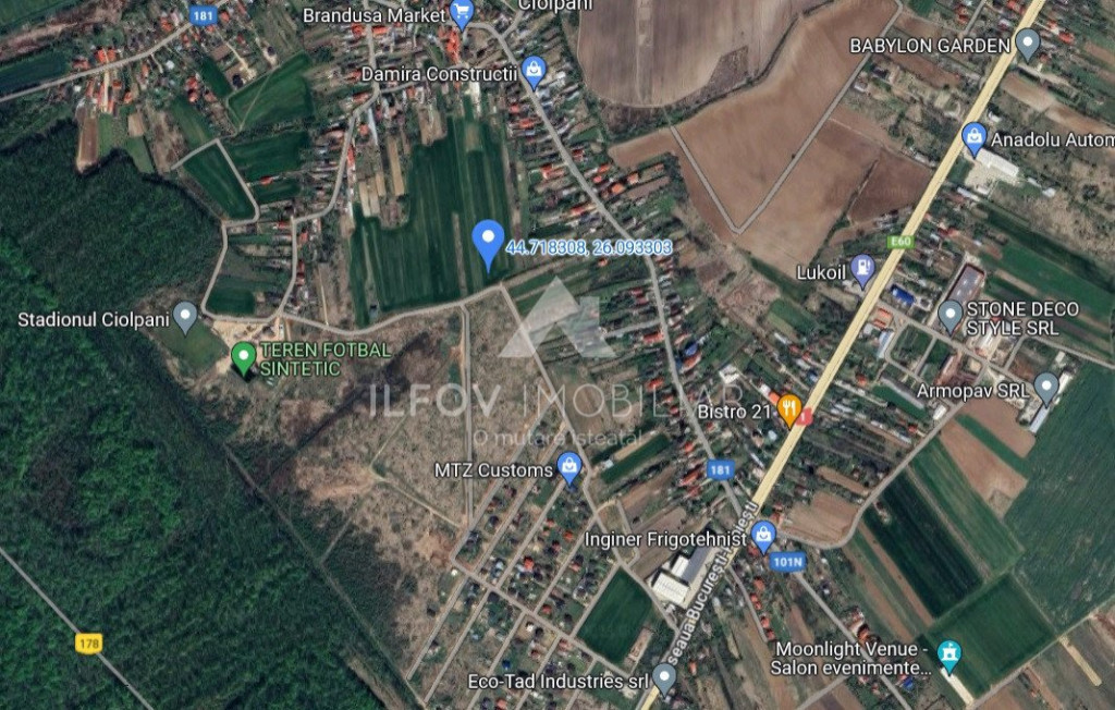ILFOV IMOBILIAR – “ O mutare isteata! “ CIOLPANI – LOT 6.525MP TEREN INTRAVILAN PARCELAT IN 9 LOTURI, ACCES DIN STRADA ALUNULUI, APA SI CANALUL TRASE RECENT, ASFALT, PADUREA LA 300M, 1 MINUT DIN DN1, IDEAL INVESTITIE PRET: 104.400 Euro 16 Euro/Mp PRET PLATA IN RATE 117.450 Euro 18 Euro/mp (avans 27.450 Euro, restul de pret in 12 rate egale). Asa cum v-am obisnuit, COMISION 0 Terenul se afla in Ciolpani pe strada Alunului, foarte aproape de centru, unde ragasim gradinita, scoala, primarie si parc. In imediata vecinatate regasim padurea, astfel iubitorii de natura pot face plimbari cu bicicleta, trasee pe jos sau doar se pot bucura de aer curat. Accesul este foarte facil din DN1, strada asfaltata pana la loturi. Parcela intreaga are 6525mp si este formata din 9 loturi de aproximativ 537mp si un drum cu latimea de 7ml. Terenul este ideal de investitie, o gradina/livada pentru relaxare, fie revanzare per lot sau dezvoltare imobiliara in viitorul apropiat. Dezmembrarea a fost gandita sa faciliteze asezarea geografica a viitoarelor constructii in teren. Astfel drumul a fost realizat pe partea stanga a lotului, viitoarele imobile sa fie asezate cu fata catre padure, iar soarele va rasari pe zona din spate a curtii, la apus fiind pe fata lotului, putand astfel folosi vara toata dupa-amiaza zona de curte. P.O.T. = MAX.35% C.U.T. = MAX.1. REGIM INALTIME P+2 Primaria faciliteaza si ajuta dezvoltarea in zona, demersurile cu actele sunt efectuate rapid. Daca doriti o colaborare cu agentie noastra ne puteti scrie pe adresa de e-mail sau va asteptam la sediul din in Otopeni, str. 23August, nr. 152A, ilfov. Contact: [email protected] 0733 041 859 Costin Stefan – Broker/Owner Id intern: P187