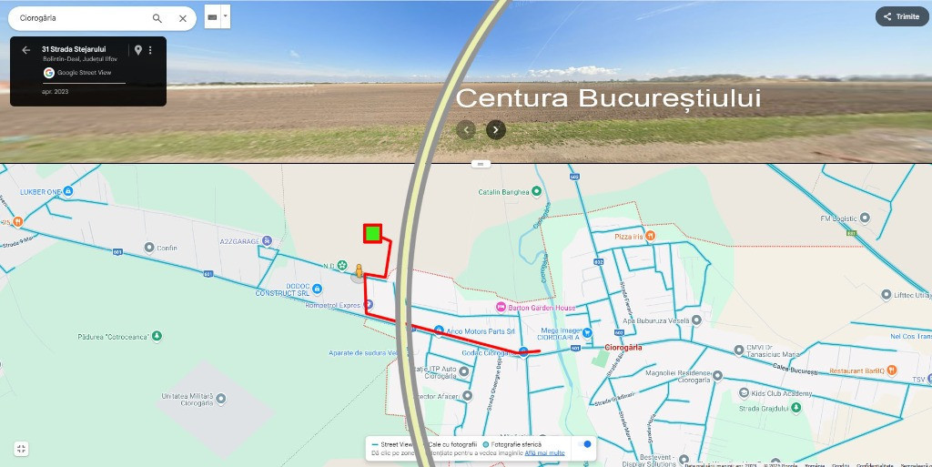 Teren Intravilan de Vânzare Ciorogârla, Ilfov Suprafață: 500 mp Deschidere: 20 metri liniari Preț: 37 EUR mp ușor negociabil Localitate: Ciorogârla, jud. Ilfov ________________________________________ Detalii Teren Teren intravilan, împrejmuit Front stradal: 20 m Număr fronturi: 1 Acces auto Drum de servitute separat Străzi: de pământ și pietruite Direct proprietar - Acte pregătite pentru vânzare ________________________________________ Localizare și Acces Situat la 100 m de Centura Bucureștiului Acces rapid către Autostrada A1, București și zona Mogoșoaia sau Domnești 500 m până la Șoseaua București și pădurea de tei 7 minute cu mașina până la Carrefour Militari ________________________________________ În apropiere La doar 5 km distanță: Fashion Outlet Militari Hornbach, Carrefour, Brico Depot, Kika Aqua Park Divertiland Metro, Auchan Stația de metrou Preciziei ________________________________________ Ideal pentru investiție sau pentru construcție casă în zonă liniștită, aproape de oraș, dar departe de agitație.