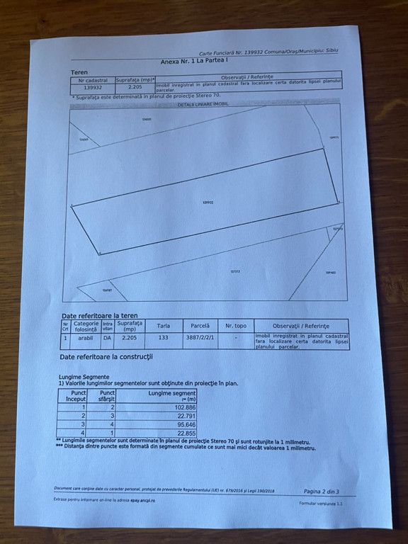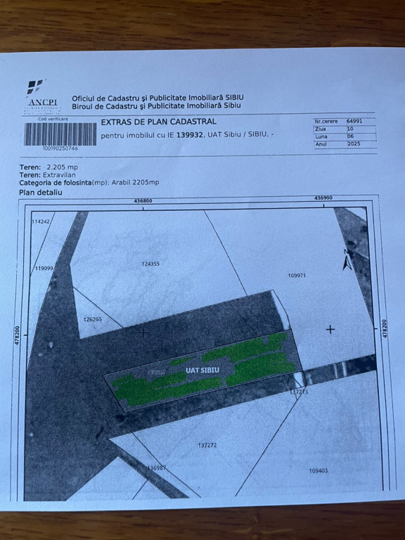 Vând teren în suprafață de 2205 mp pe strada Henri Coandă FN, municipiul Sibiu, zona Lazaret