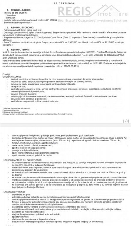 REGIS Imobiliare va propune spre vanzare un teren intravilan construibil in zona Astra - Spitalul Judetean.