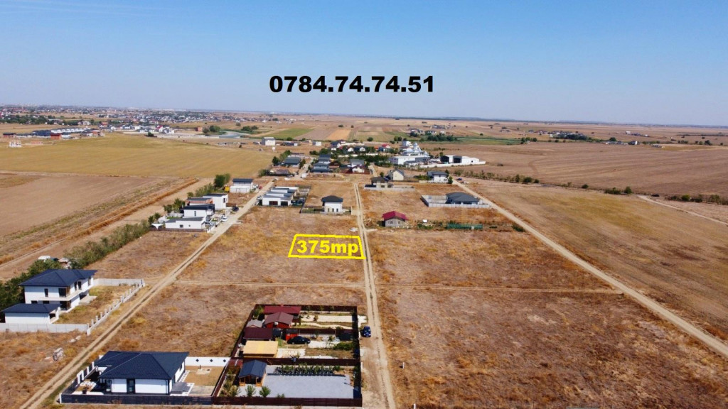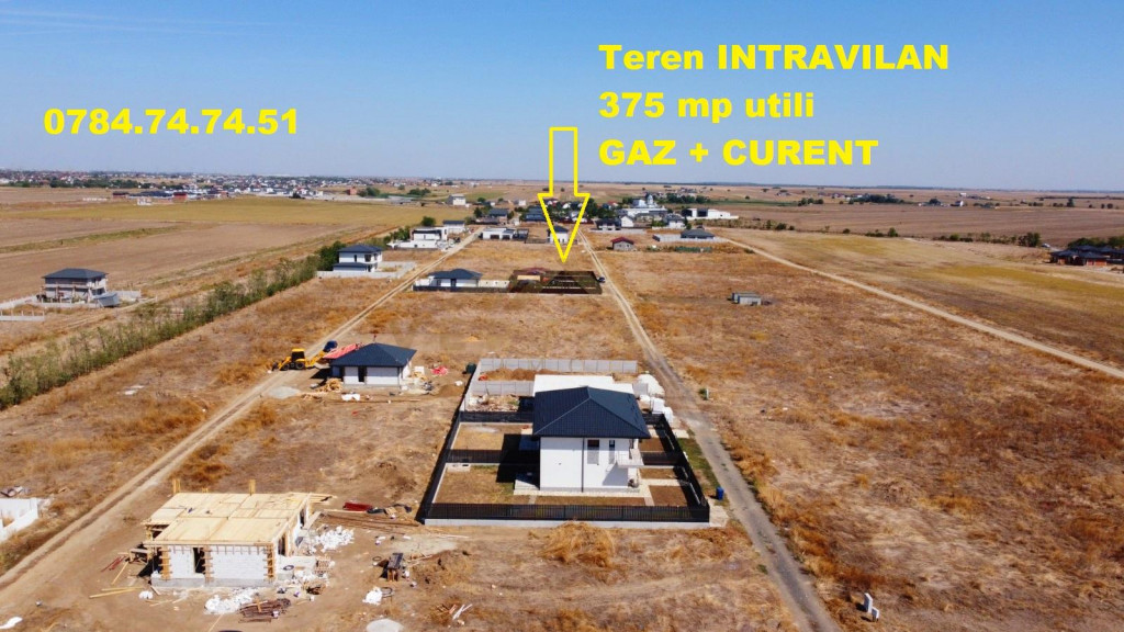 Vă oferim spre vânzare un teren intravilan cu utilitati, avand o suprafață de 375 mp utili. Localizare liniștită, aproape de natură 375 mp utili Gaze naturale Curent electric Fibra optica Este alegerea ideală pentru cei care își doresc să construiască o casă de vacanță sau o locuință permanentă într-o zonă cu aer curat și acces rapid către Bucuresti. POT 30%. Drum: 9 m (cedat Primariei) ** Programari pentru vizionari si in weekend *** COMISION 0% Mihaela - 0784.74.74.51