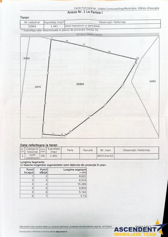 Comision cumparator: 0% ASCENDENT IMOBILIARE COVASNA propune spre vanzare teren intravilan situat la intrarea in localitatea Sfantu Gheorghe. Oferta de teren de vanzare cu o panorama superba este o oportunitate unica pentru cei interesati sa investeasca intr-un loc cu privelisti impresionante si de neuitat. Acest teren situat pe un punct inalt ofera o panorama uimitoare asupra imprejurimilor, care poate include elemente naturale precum munti, vai si paduri. Privelistea ampla si neintrerupta este unul dintre principalele atuuri ale acestei proprietati. Cumparatorii pot bucura de rasarituri si apusuri spectaculoase, precum si de schimbarile de culori ale naturii pe parcursul anotimpurilor. In plus, o priveliste panoramica poate crea o atmosfera relaxanta si revigoranta, in care oamenii se pot deconecta de agitatia cotidiana. Acest tip de teren de vanzare poate fi atractiv pentru potentialii constructori care doresc sa-si construiasca propriile case personalizate intr-un cadru de vis. In plus, terenul cu o panorama superba poate servi ca baza pentru dezvoltarea unui complex turistic, a unei pensiuni sau a unei facilitati de agrement, capitalizand astfel asupra frumusetii naturale a zonei. In concluzie, o oferta de teren de vanzare cu o panorama superba poate fi descrisa ca o oportunitate de a achizitiona un colt de rai care ofera nu doar un loc pentru constructie, ci si experiente vizuale deosebite si unice. Pret:103.500 EURO Invitam colegii la colaborare: garantam agentului/ agentiei partenere onorariul aferent! Consilier dedicat alesei oferte: domnul Ionel Manailescu Telefon/ WhatsApp: 0 745 051 787 Detalii, fotografii suplimentare, precum si alte variante similare exclusive: www.ascendentimobiliare.ro
